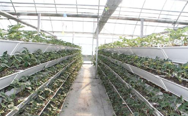 將盆栽或袋裝草莓種植在裝有栽培基質的盆或袋中,并用營養液循環灌溉。這適用于作物病蟲害嚴重,土壤次生鹽漬化嚴重或戈壁灘不適合作物生長的地區。大塊種植。草莓立體種植槽